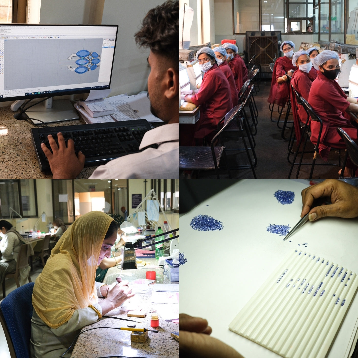 Recent hebben we onze leveranciers in India bezocht en gezien hoeveel werk en tijd er in ieder sieraad zit. In de fabrieken werken we voornamelijk met vrouwen die ieder stuk met de hand maken. Zelfs onze gold plated items doorlopen een uitgebreid proces, van het selecteren van stenen tot het zetten en afwerken. Die toewijding en het vakmanschap zorgen ervoor dat elk sieraad bijzonder is en in kleine oplages wordt gemaakt.